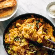 This was a great summery recipe!! Loved the pappardelle amidst all the fresh veggies. We forgot the corn, but didn’t notice it was gone. It wasn’t quite as good for leftovers because the wide pasta keeps absorbing the limited sauce, so if you’re a meal prepper, be aware! I’d keep this as a one-night dinner for optimal experience.