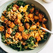 This bowl is great! I made extra sweet potatoes and had tons for leftovers. That marinade/dressing is addictive. I subbed the kale for some fresh chopped rainbow chard, stems in, and added the apple, quinoa, and pumpkin seeds. I will definitely make this again!