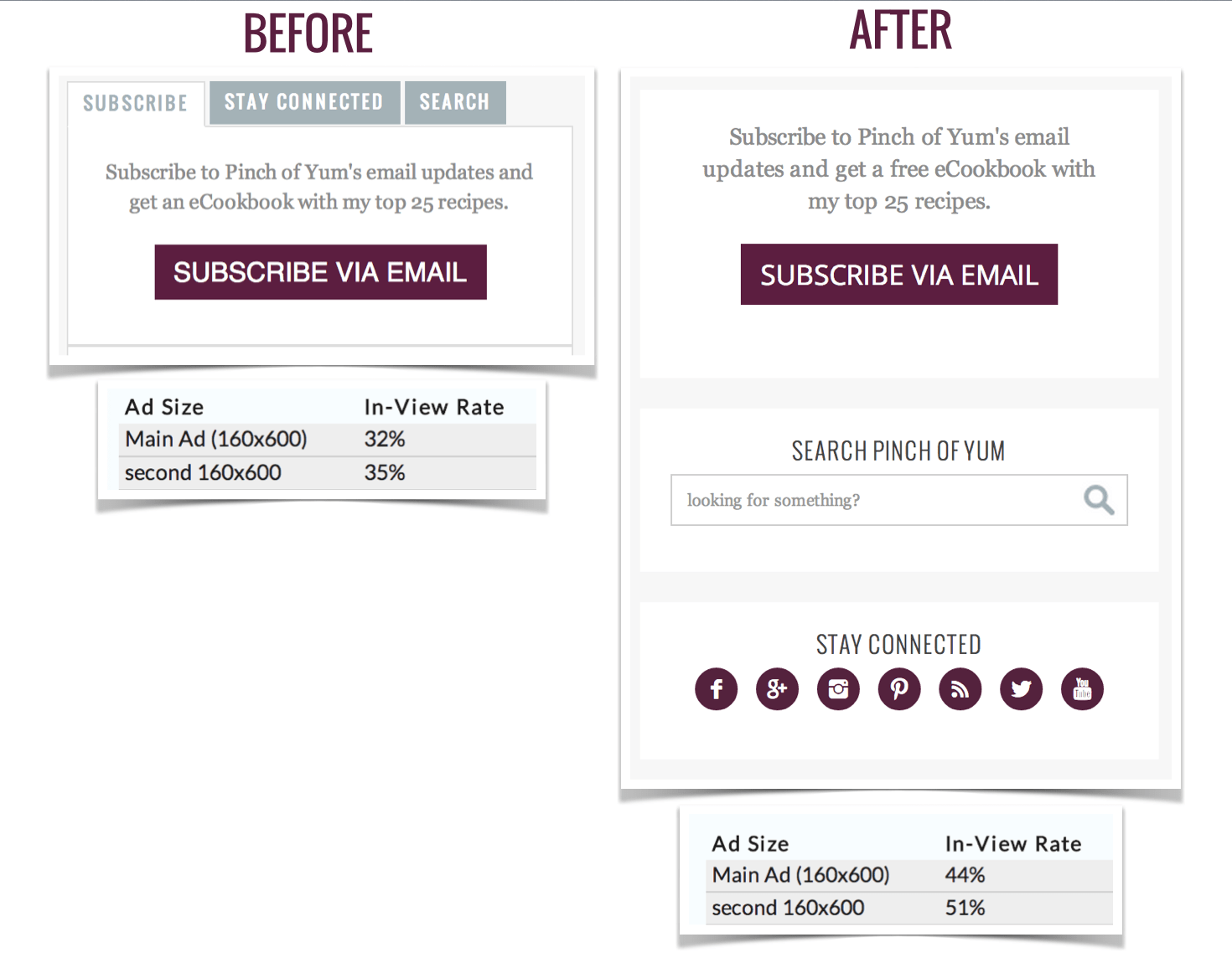 The first step we took to improve the viewability of these 160×600 ads was to move them down the sidebar. This seems a bit counterintuitive, but in last month’s report, I share how this actually can improve viewability.