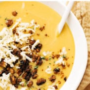 But also, this soup. This bright beautiful luxe bowl of autumn, we’d marry it any day of the week.