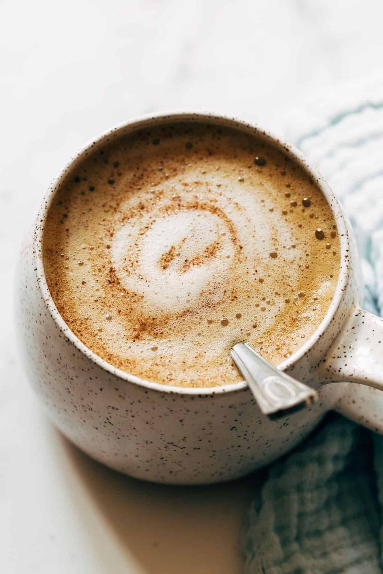 A delicious homemade morning treat! Steaming hot, rich, and dark coffee that’s satisfyingly creamy, barely sweet, and warm-spiced.